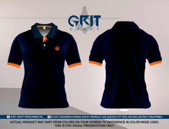 Blue Polo Shirt with Orange Design