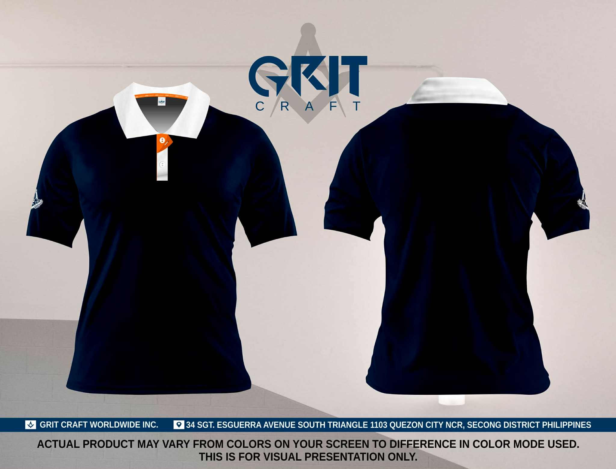 Blue Polo Shirt with White Collar Design