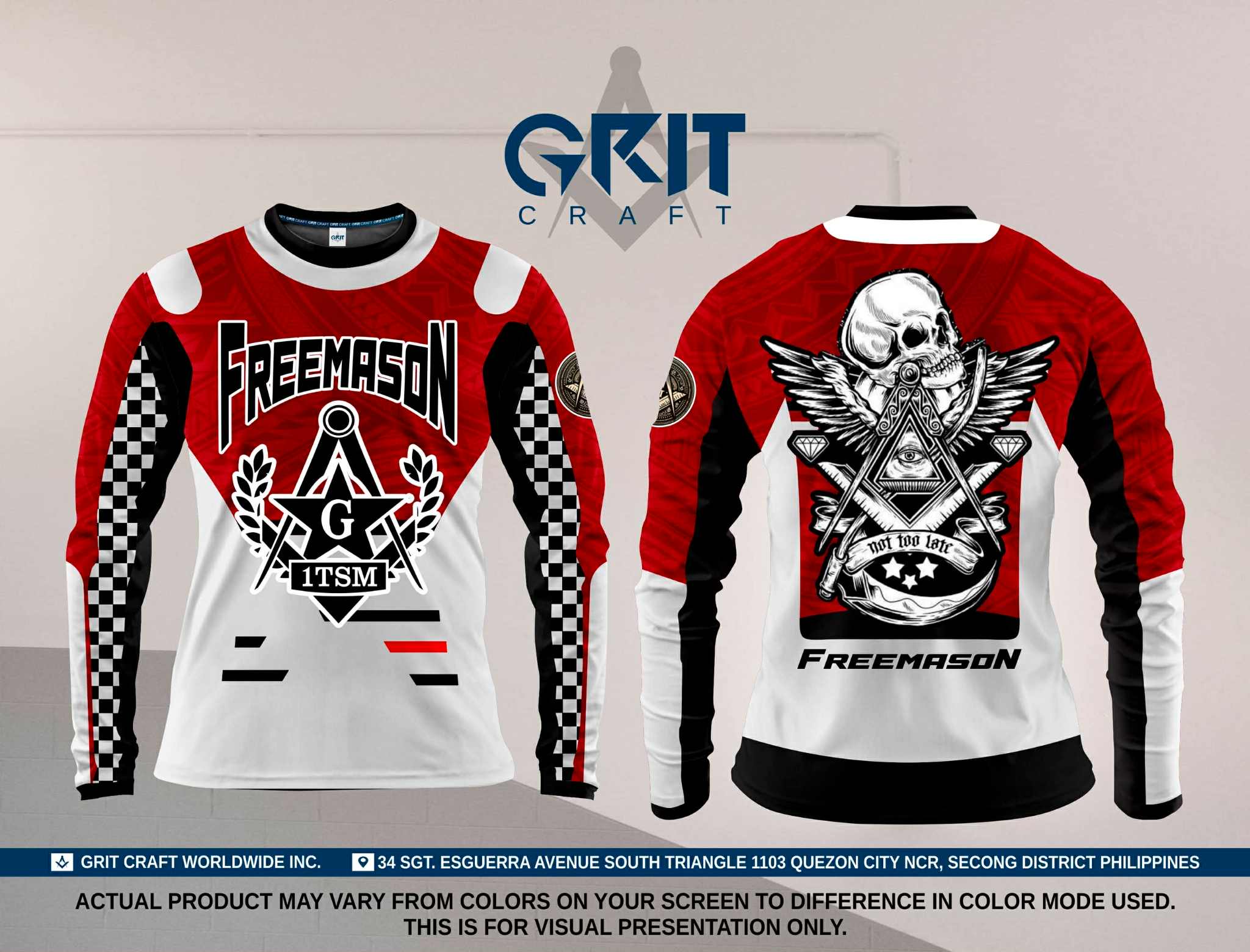 Masonic Motorcycle Longsleeves – Black, Red, and White Version 2